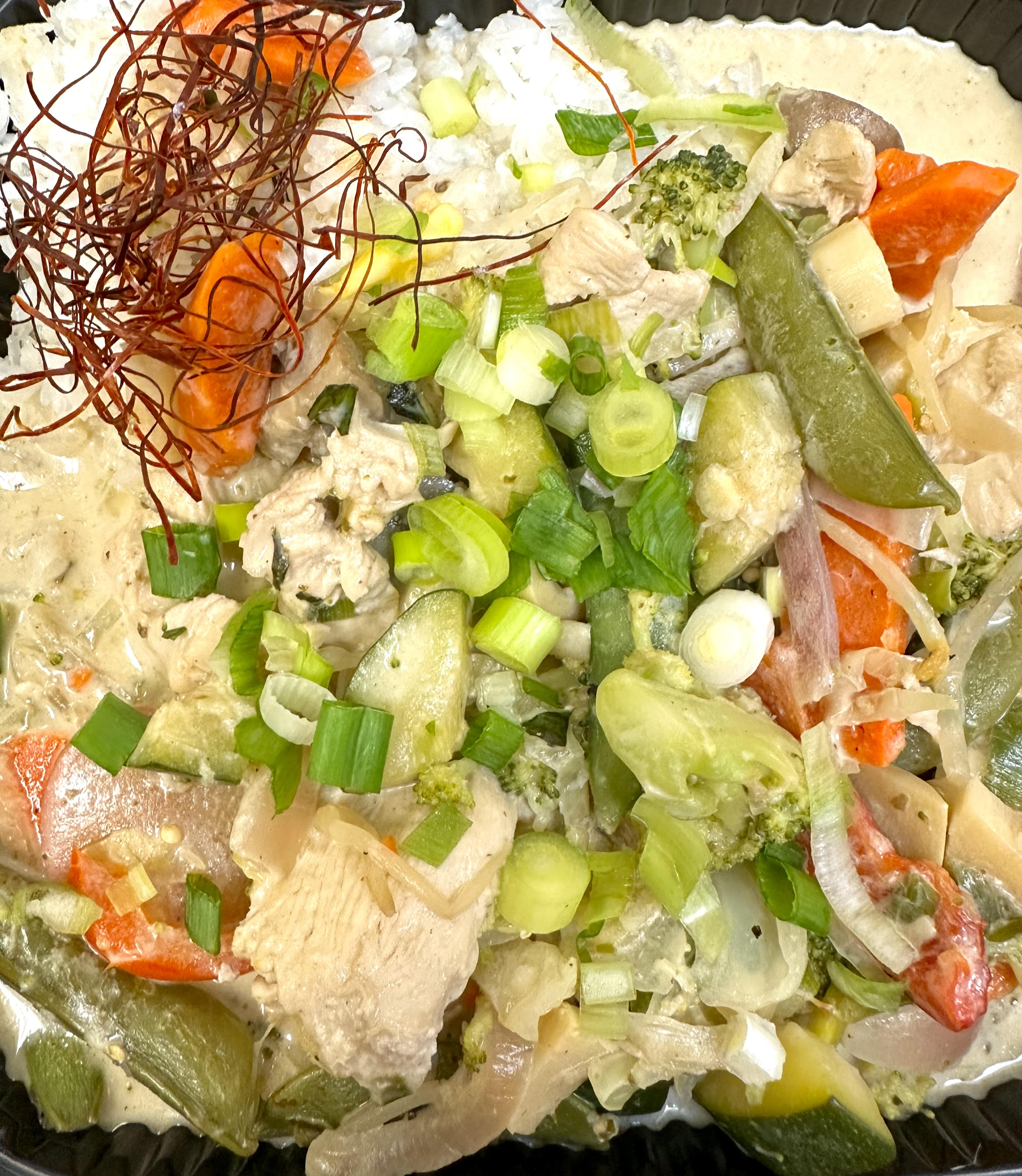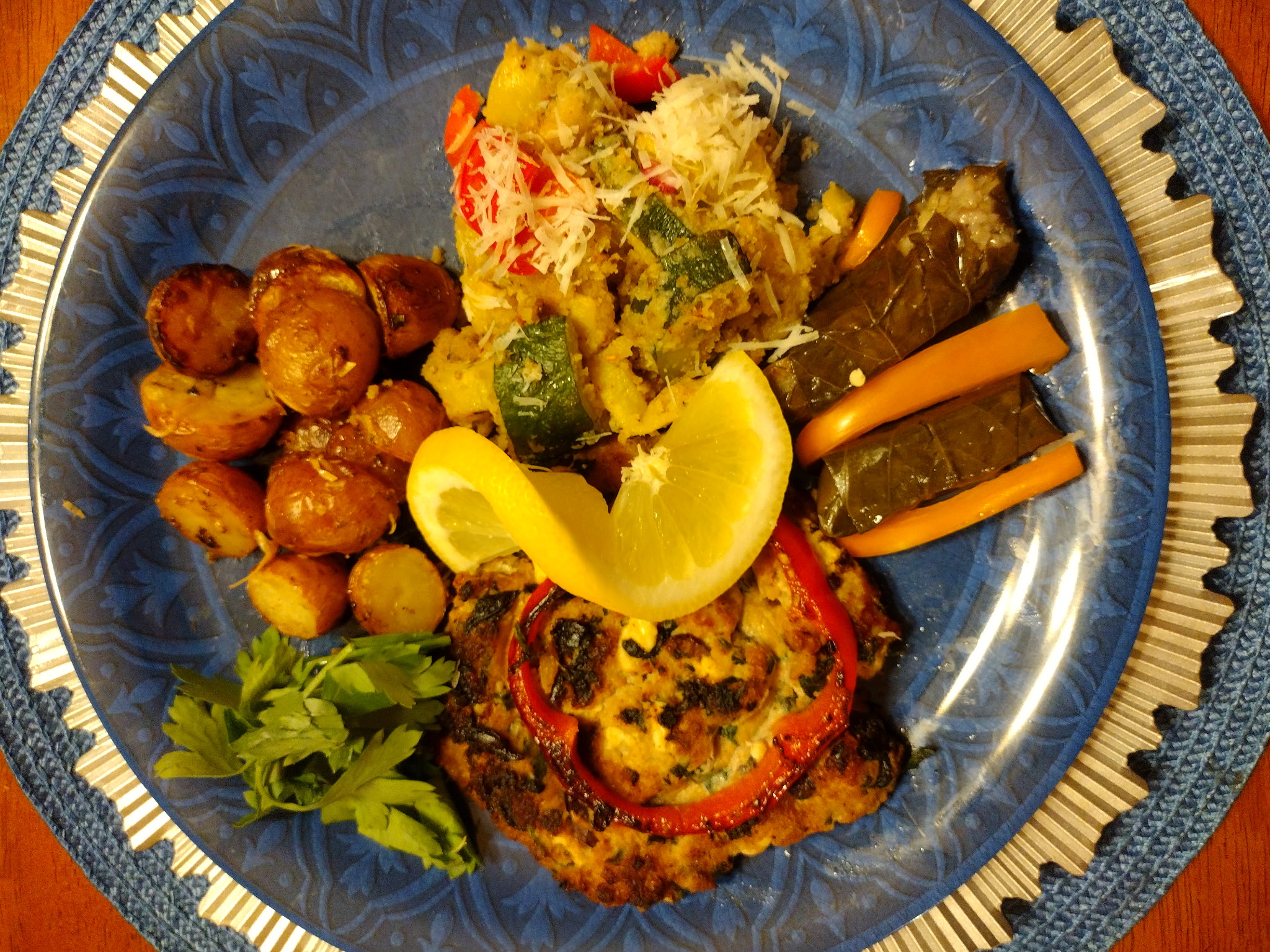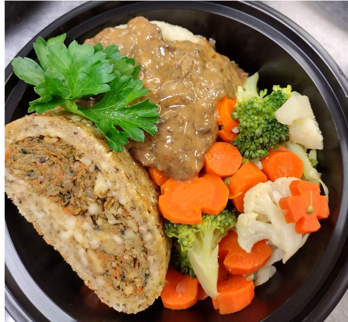 Tender pork medallions dressed with toothsome gravy, oven-roasted organic gold potatoes, caramelized apple onion bacon cubes, nestled besdie a zippy sweet-sour side of red cabbage that's great on its own or as an accompaniment to any item on the plate.
